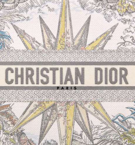 The Dior Book Tote is an original creation introduced by Dior’s Creative Director, Maria Grazia Chiuri, and has become a staple of the Dior aesthetic. Designed to hold all the daily essentials, it is fully embroidered with the white multicolor Rêve d’Infini motif by artist Pietro Ruffo, offering a dreamlike new take on Christian Dior’s favorite star symbol and essential House code. Adorned with a ‘CHRISTIAN DIOR PARIS’ signature on the front, the large tote exemplifies the House’s signature savoir-faire and may be carried by hand or worn over the shoulder.