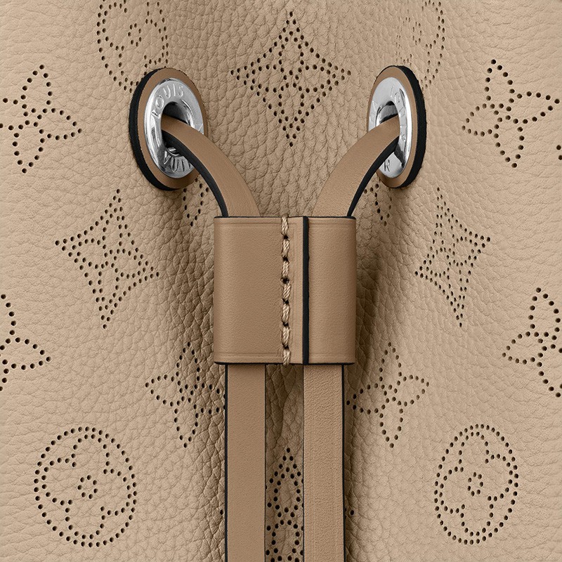 The Muria bucket Bag is made from Mahina calf, a perforated leather with a discreet Tote motif. Supple and sophisticated, it is a pleasure to carry, either by the braided top handle or the long leather strap, which adjusts for short- and long-shoulder or hands-free cross-body wear. Crafted signature details include a name tag and keybell in smooth .