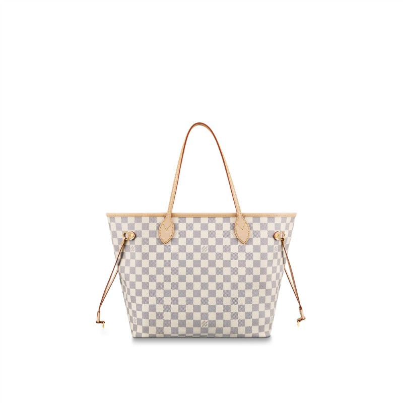 The bag tote unites timeless design with heritage details. Made from fresh Damier Azur canvas with natural cowhide trim, it is roomy yet not bulky, with side laces that cinch for a sleek allure or loosen for a casual look. The slim leather handles slip easily over the shoulder or arm. Lined in colorful textile, it features a removable totewhich can be used as a clutch or an extra pocket.