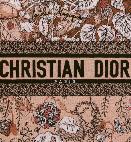 Introduced by Maria Grazia Chiuri, Dior’s Creative Director, the Dior Book Tote has become a staple of the Dior aesthetic. Designed to hold all the daily essentials, the style is fully embroidered with the powder pink Dior Jardin Magique motif, a bucolic and enchanting creation inspired by a magical world. The design is adorned with the ‘CHRISTIAN DIOR PARIS’ signature on the front and exemplifies the House’s signature savoir-faire. The medium tote may be carried by hand or worn over the shoulder.