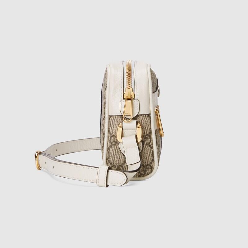 A new addition to the collection is a structured mini bag with white leather trim. The logo evolved from the early Luxury diamond plaid pattern that began in the 1930s. It was first used in the 1970s and has since become a representative element of the Luxury collection.