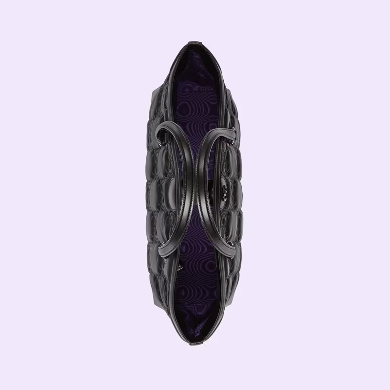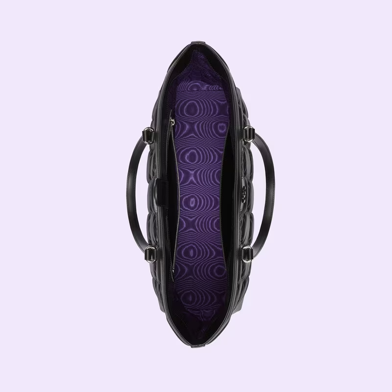 A new combination of the House’s most defining codes—the motif and Web stripe—the world of continues to evolve, incorporating new shapes and silhouettes each season. With recognizable design elements in a practical new shape, this sized tote is trimmed with textured leather and topped with tonal Double G hardware.