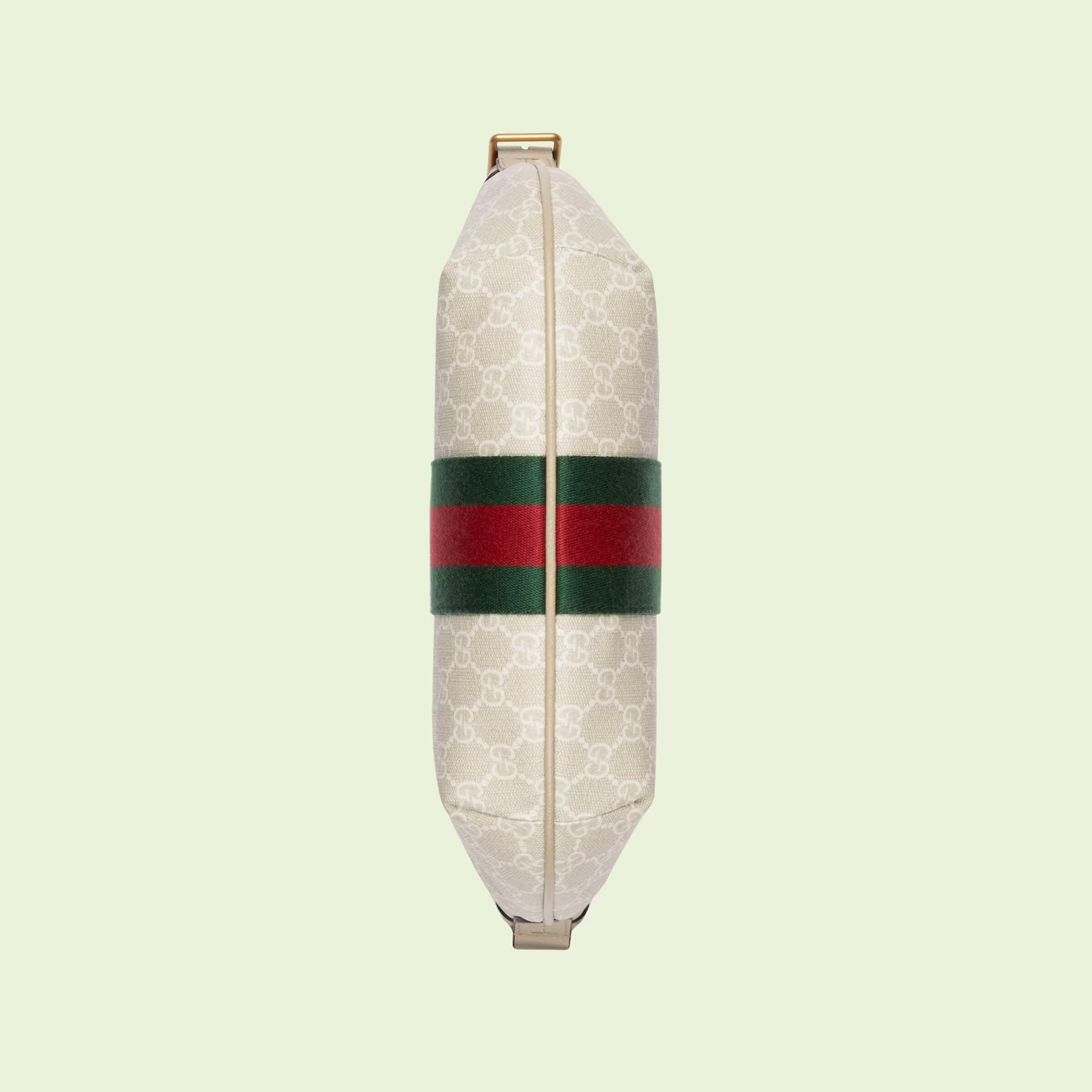 An archival design from the 1930s inspired the canvas, now one of the House’s most emblematic materials. Traditionally presented in beige and ebony, it appears here in a beige and white combination, an ode to timeless pieces and everlasting design. An oatmeal leather trim completes this shoulder bag, while the green and red Web detail adds a subtle reference to the House archives.
