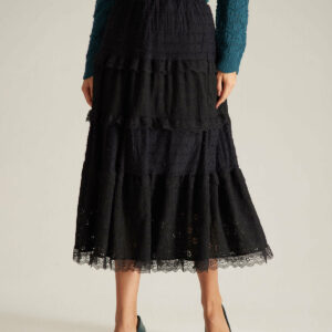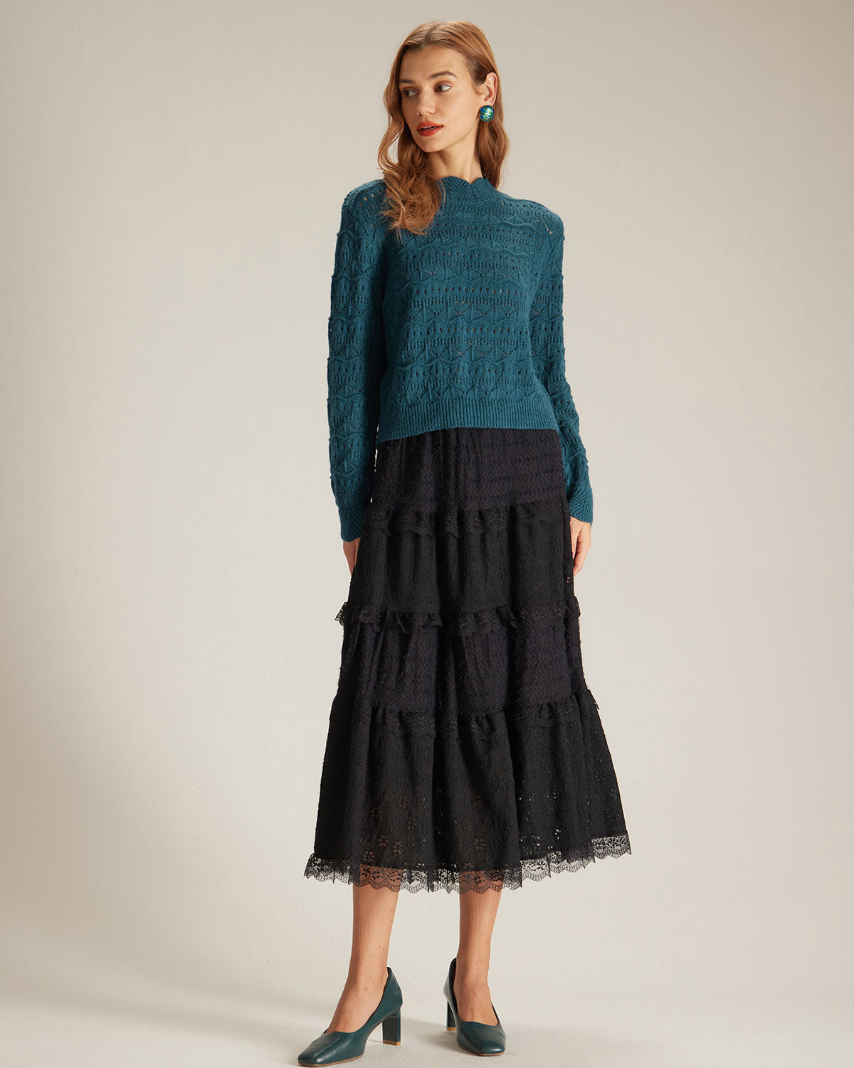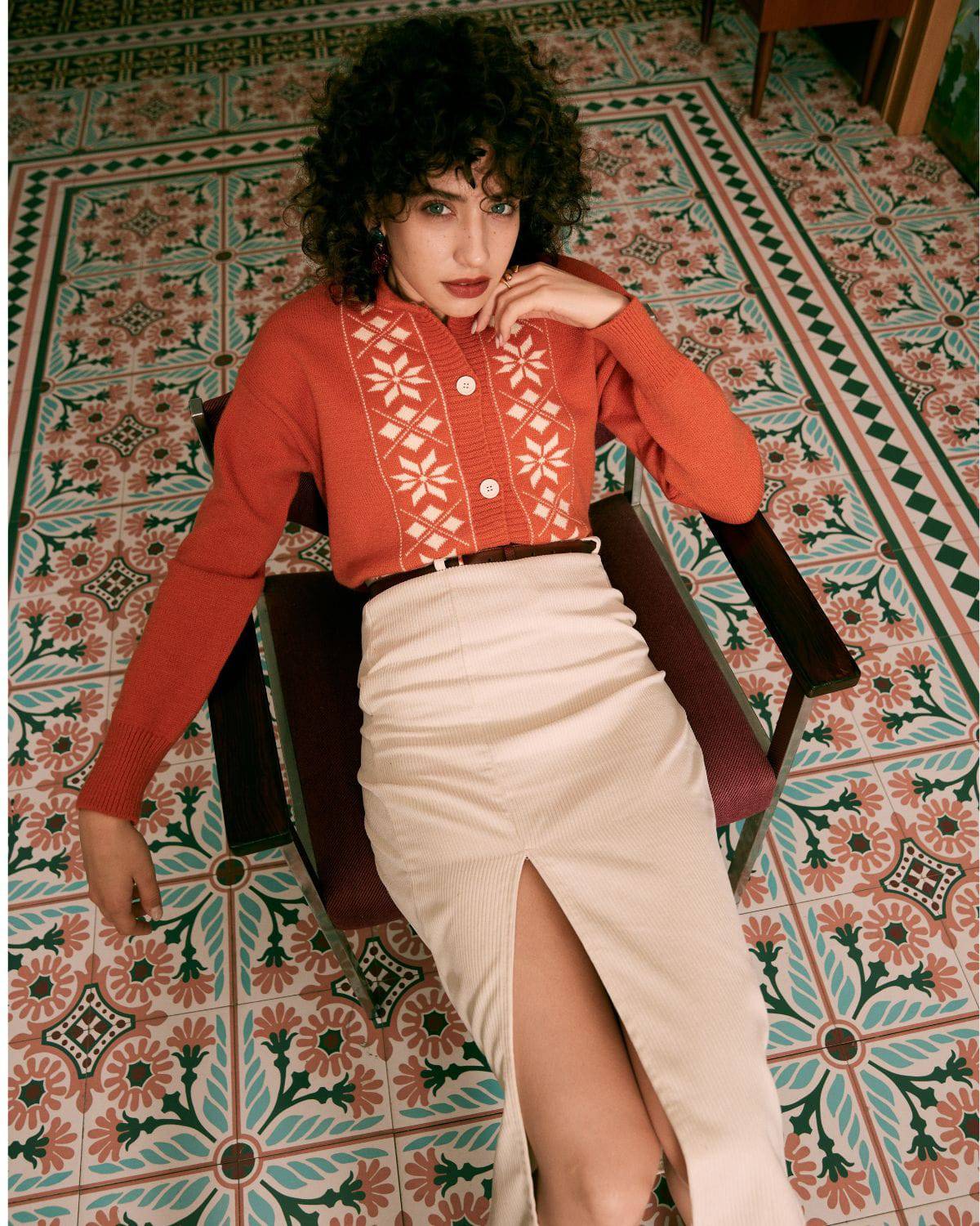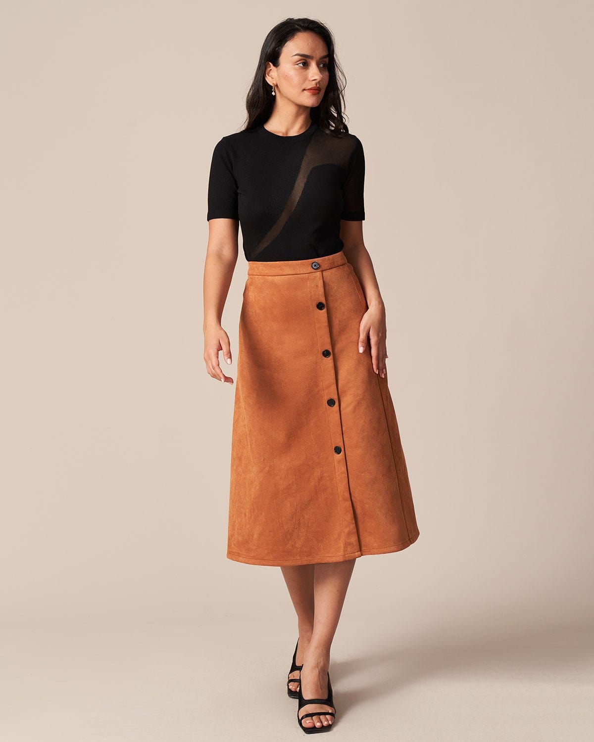 The Beige Elastic Waist Striped Knit Midi Skirt