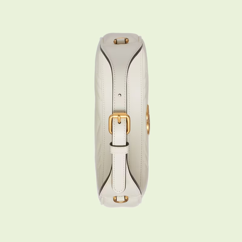 With a crescent silhouette and textured white leather, this mini bag has a defined retro feel. Each collection is a journey through different decades and eras, combining elements with archival codes or contemporary details to create new designs that exist outside of space and time. The petite accessory reflects this fascination with the past, a concept that runs throughout the world of Marmont.