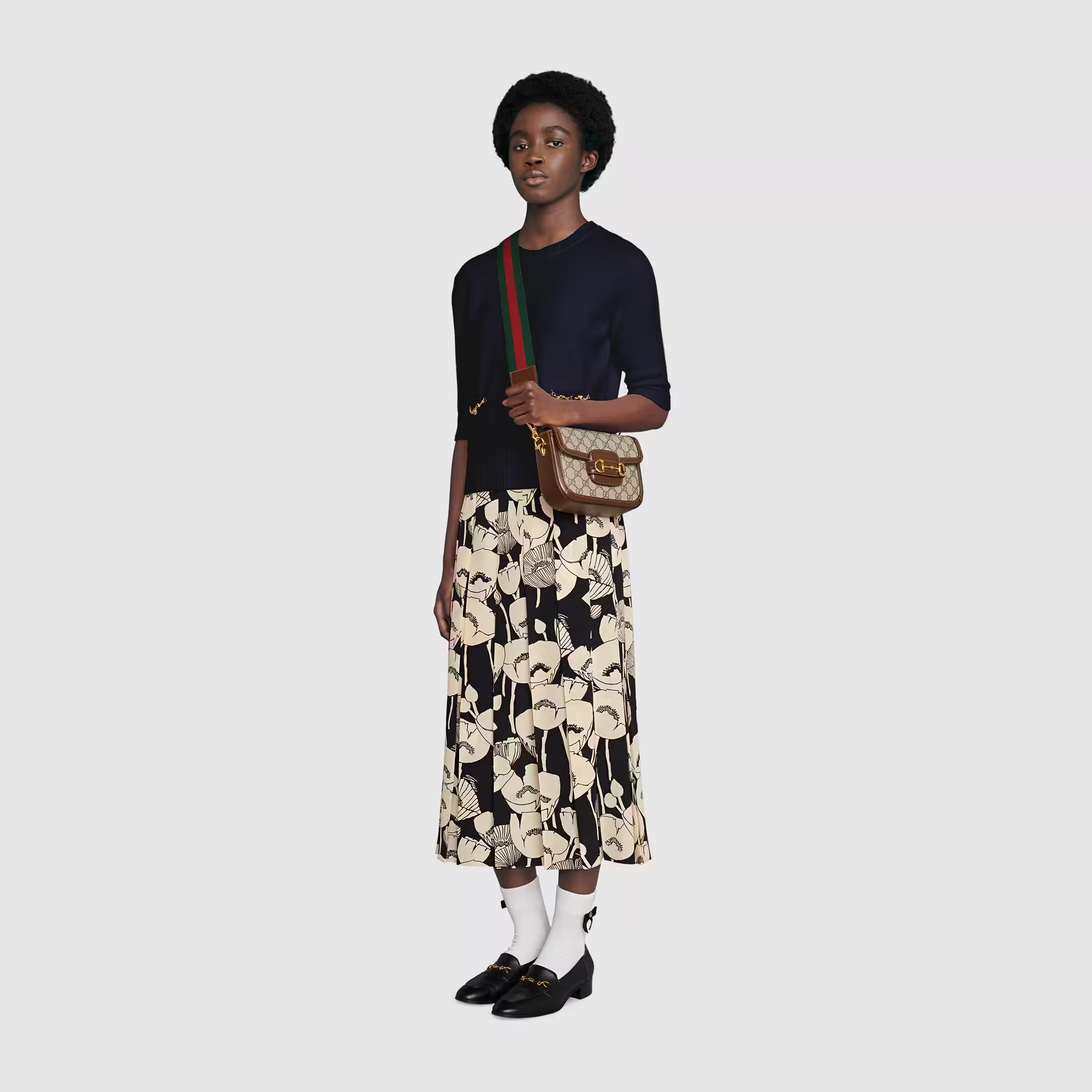Petite versions of the Luxury hand add a hybrid twist to the inspired line. Enriched with two different shoulder straps, the mini bag’s character transforms from understated elegance with a tonal leather strap to a strong logo feel thanks to a red and green Web option. The accessory is presented in Tote canvas with a brown leather trim.