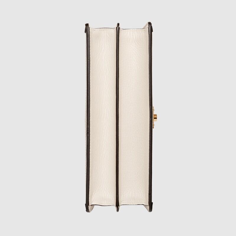The collection is reinterpreted in Luxury ‘s “Aria-Fashion Aria” collection, with retro-inspired details and brand elements. This handbag is crafted in beige and ebony canvas with white leather piping and a detachable shoulder strap. The red and blue striped web intarsia details pay homage to the brand’s equestrian origins and complement the overall look.